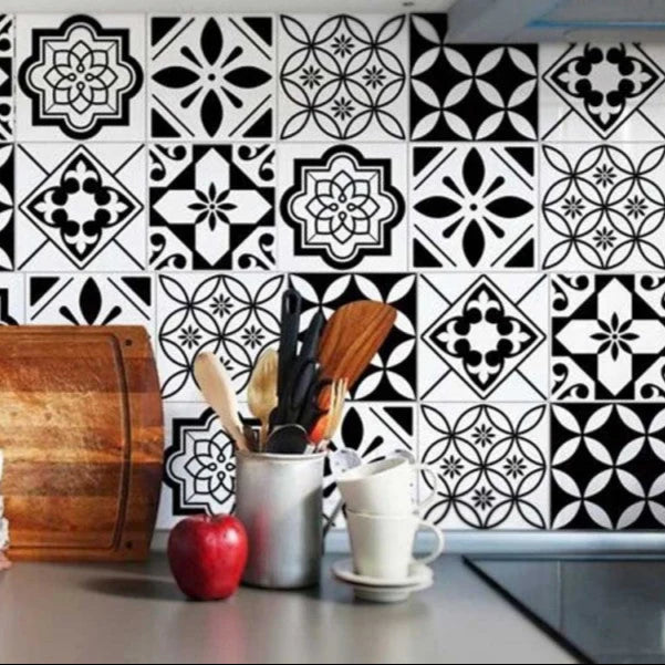 2 Pcs Geometric Black & White Tile Stickers – Bold Patterns, Easy Makeover | elitechoice